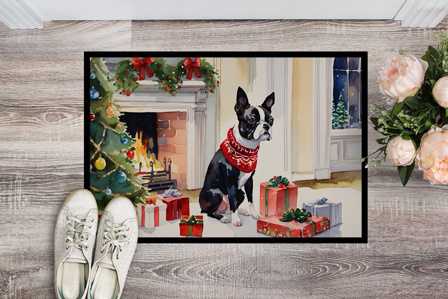 Home > Boston Terrier Cozy Christmas Doormat Front Door Mat Indoor Outdoor Rugs for Entryway, Non Slip Washable Low Pile, 24H X 36W