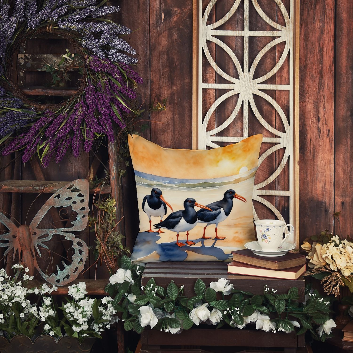 Throw Pillow featuring breed specific Oystercatchers artwork. Add a touch of vibrancy and comfort to your outdoor seating with Caroline's Treasures Fabric Decorative Pillow. Measuring approximately 14 inches by 14 inches, this outdoor pillow is crafted to elevate the appeal of your patio furniture, infusing it with vivid color and artistic flair. The pillow includes a 100% Polyester Fabric sham filled with a quality pillow form to provide superior comfort. Innovatively made from our brand new material, specifically woven for its water resistance, this pillow is designed for durability. The soft canvas fabric offers versatility in use, fit for your indoor couch or your outdoor patio, porch, or veranda. The fabric is dyed with colorfast dyes built for resilience against weather conditions, ensuring the pillow retains its beauty over time. Constructed by sewing three fabric pieces to create a sham, the polyester insert is then nestled inside to form the pillow, resulting in an overstuffed pillow that maintains its shape. Both the sham and the pillow insert are proudly made in the United States. As the pillows are handcrafted, there may be minor variations in size, further enhancing their unique charm. Experience comfort in style with Caroline's Treasures Fabric Decorative Pillow.