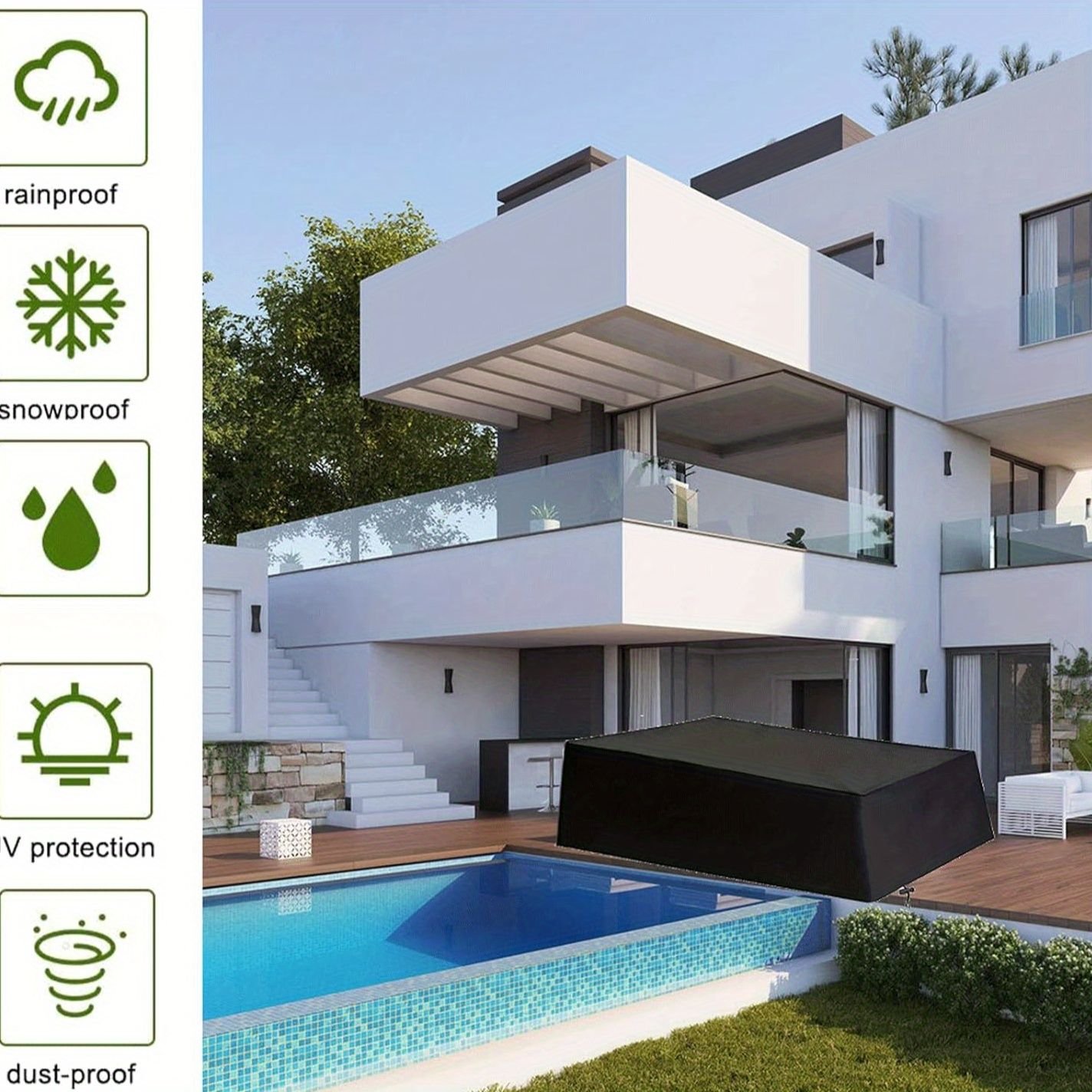 1. Windproof DesignThis garden furniture cover is designed to be windproof, ensuring that your patio set remains protected even in windy conditions.2. Heavy Duty and Rip ProofMade from 210D Oxford fabric, it is heavy duty and rip proof. It can withstand the elements and provide long-lasting protection.3. Ideal DimensionsWith measurements of 67" x 35" x 25", this cover is suitable for a variety of patio furniture sets. It offers a snug fit to keep your furniture safe.4. Durable MaterialThe 210D Oxford fabric is durable and resistant to fading, ensuring that your cover looks great season after season.5. Garden Table CoverSpecifically designed as a garden table cover, it protects your table from dust, dirt, and damage. Keep your outdoor furniture in top condition