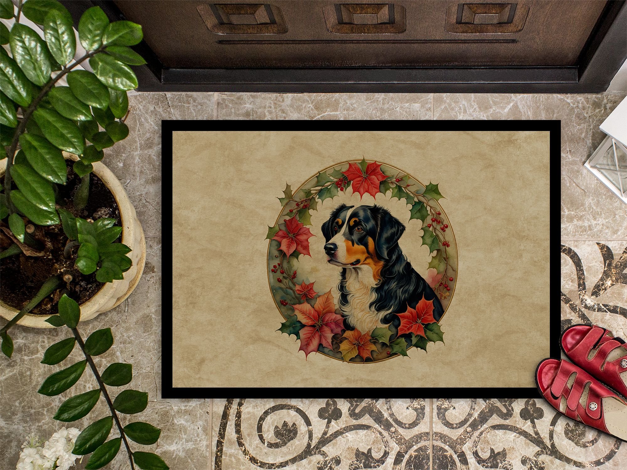 Appenzeller Sennenhund Christmas Flowers Doormat Front Door Mat Indoor Outdoor Rugs for Entryway, Non Slip Washable Low Pile, 24H X 36W