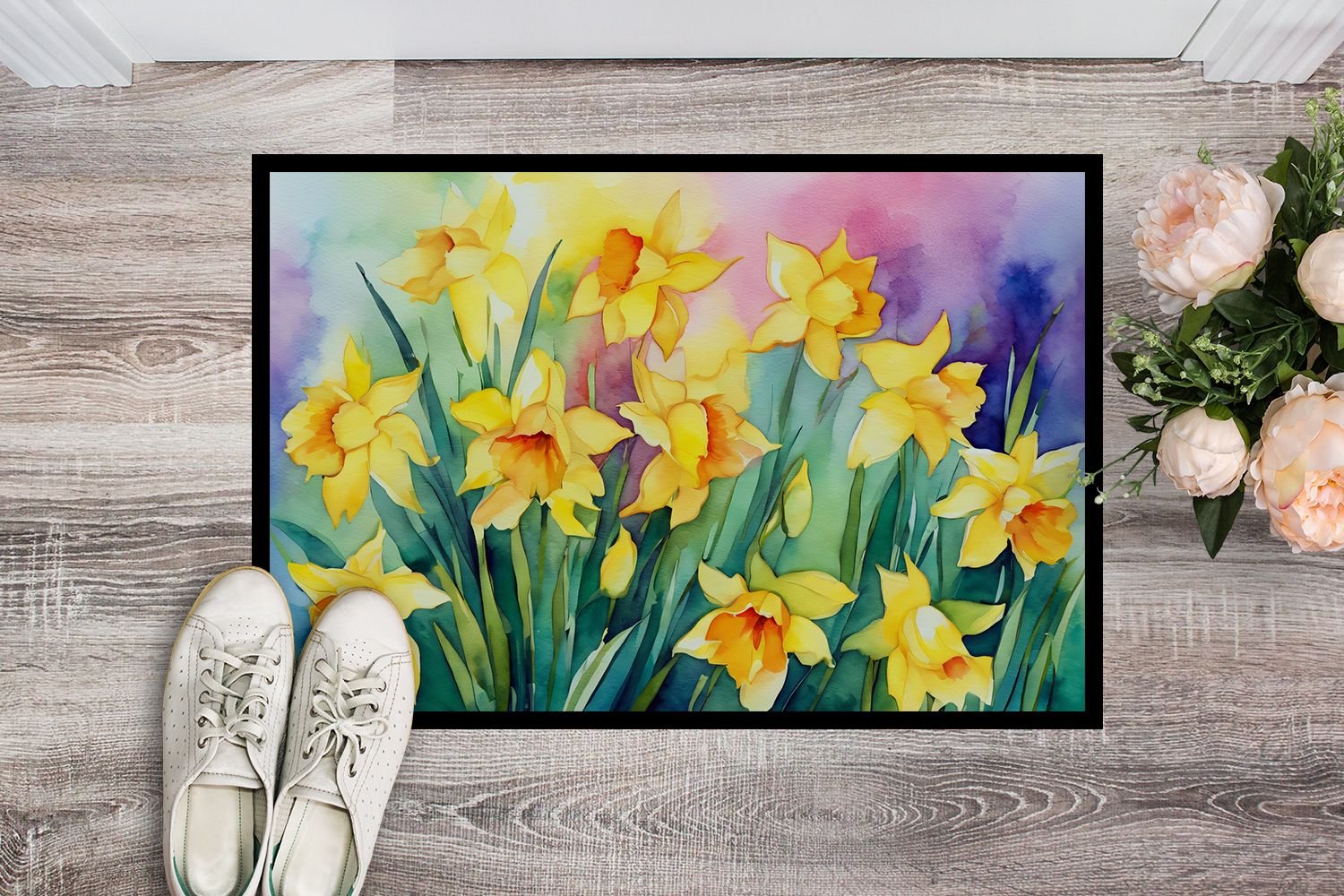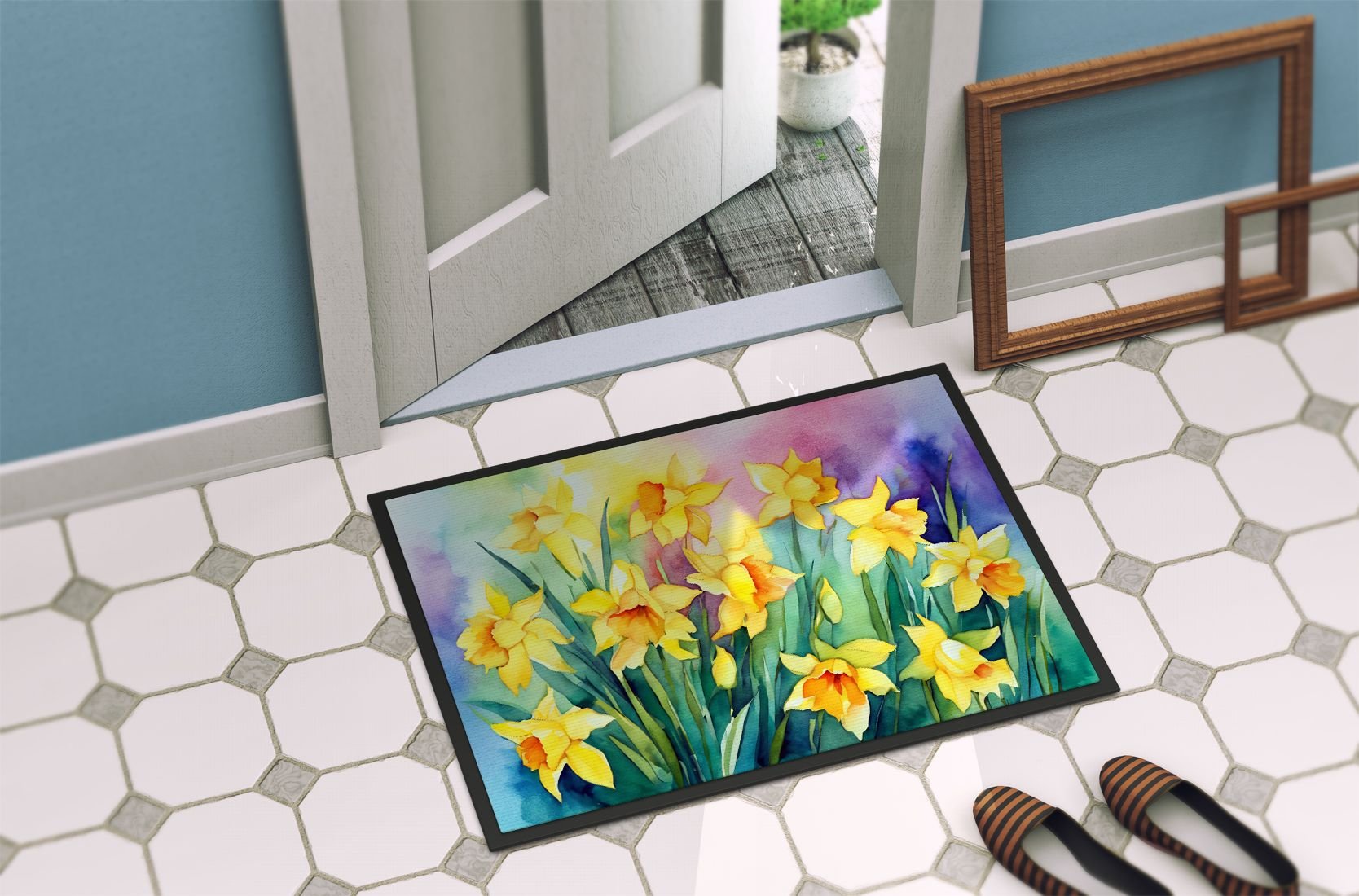 Home > Daffodils in Watercolor Doormat Front Door Mat Indoor Outdoor Rugs for Entryway, Non Slip Washable Low Pile, 24H X 36W