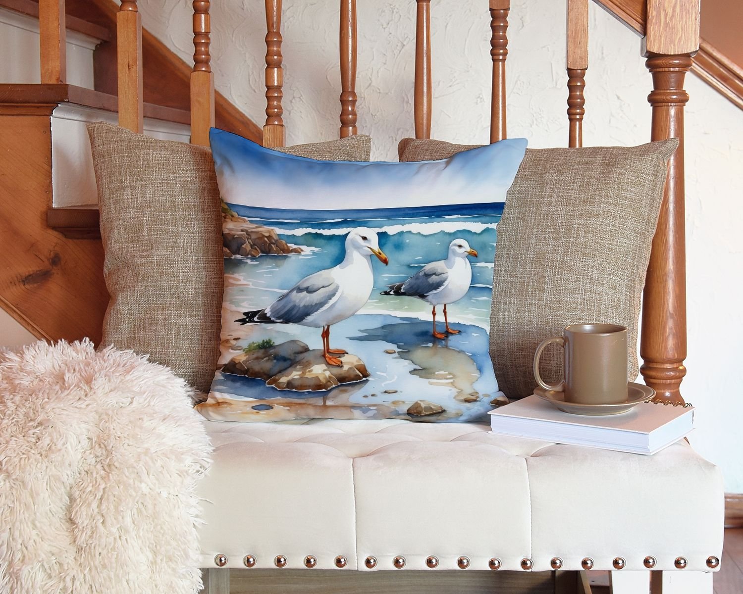 Home > Gulls Scavenging Throw Pillow Machine Washable, Indoor Outdoor Decorative Pillow for Couch, Bed or Patio, 14Hx14W