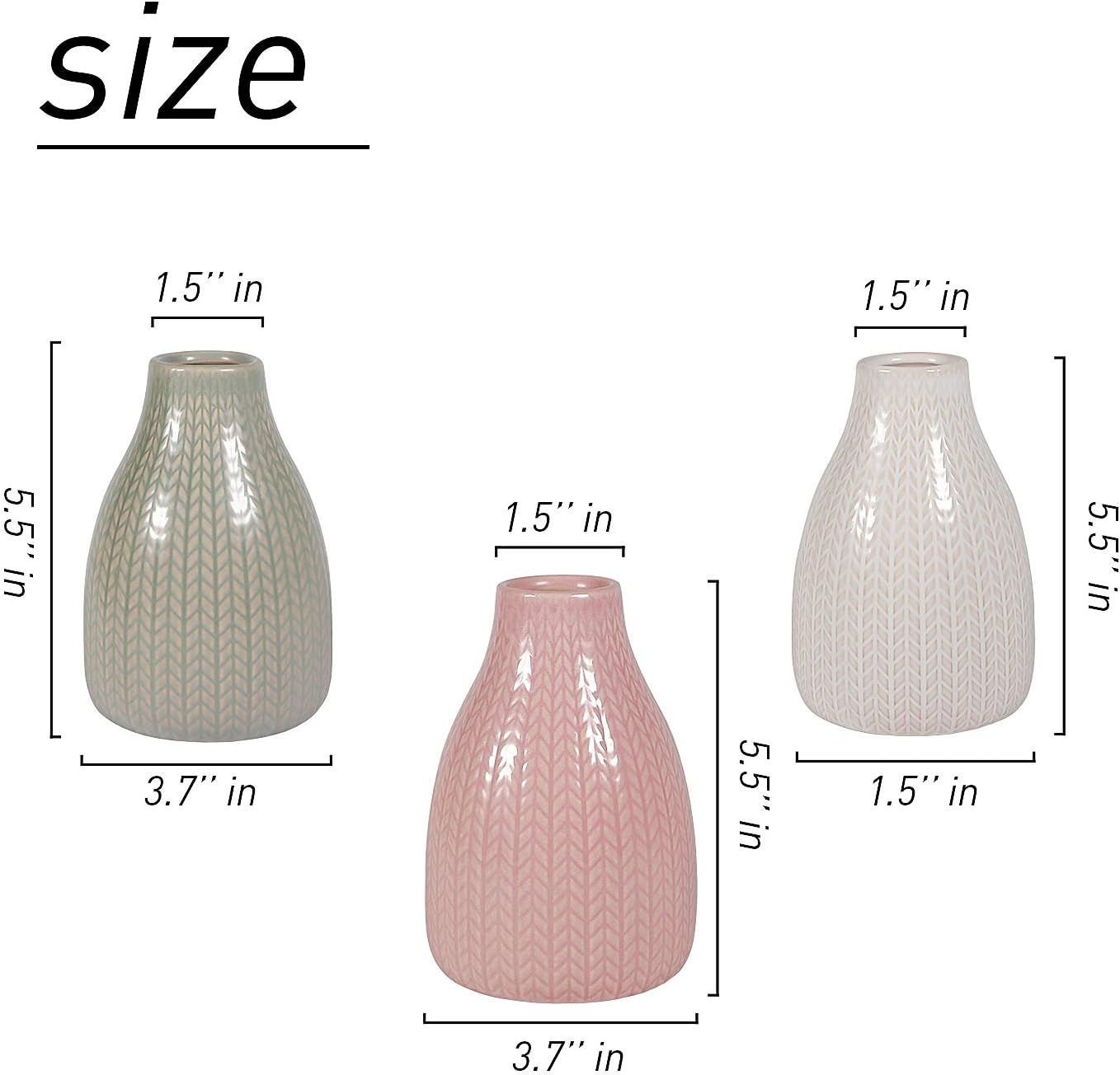 Crafted from 100% high-quality ceramics, these vases boast excellent corrosion resistance. Dimensions: 5.9 x 3.9 inches. The set includes three vases (flowers not included).
