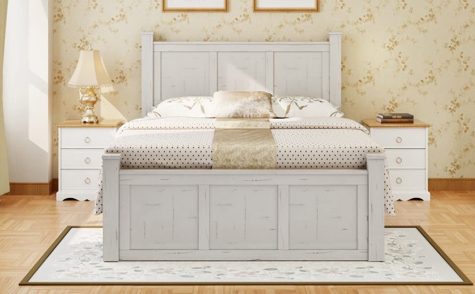Chic Design:The ultimate look for a beach cottage or shabby chic inspiration to this white distressed panel bed carries you away to a dreamy time and place.This custom solid wood bed frame is perfect for any farmhouse. It has that ageless appeal and is built to last a lifetime.