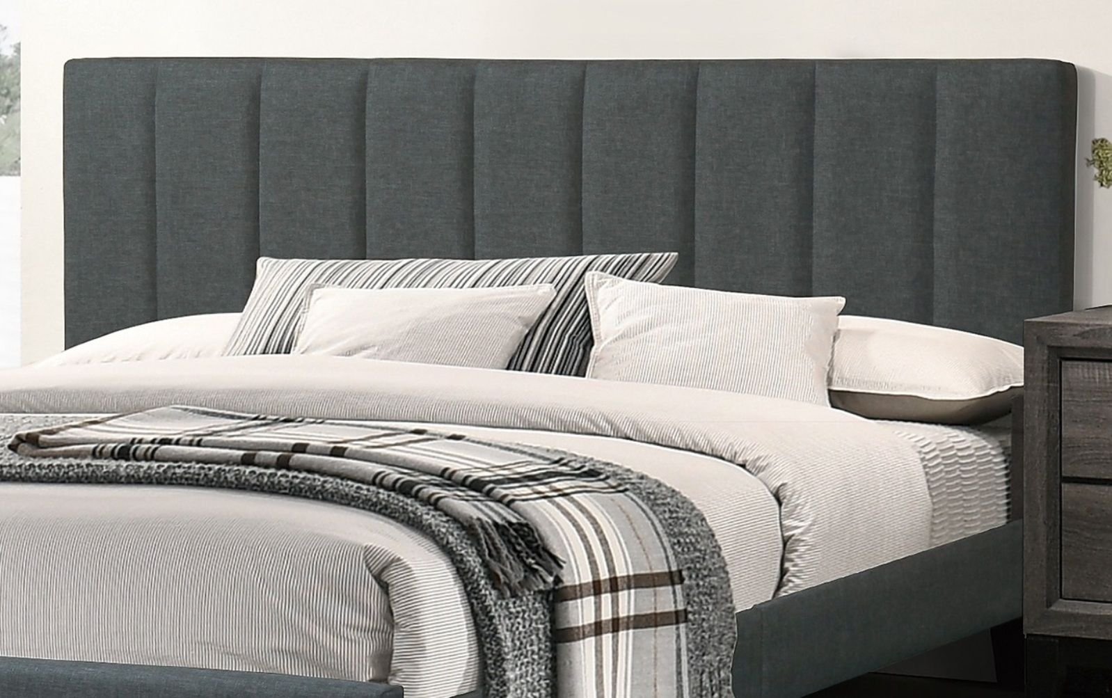Evolve your resting place with a bedframe that speaks volumes with hues of grey and definition. It features a headboard with vertical tufting and a slat mattress support. Available in grey and charcoal.