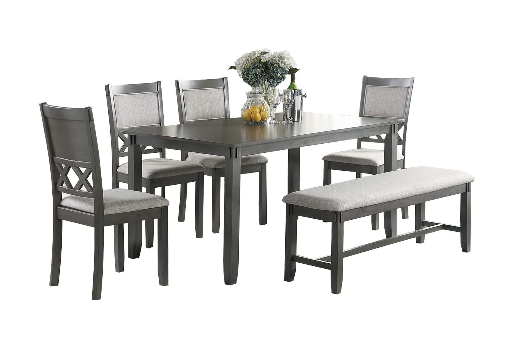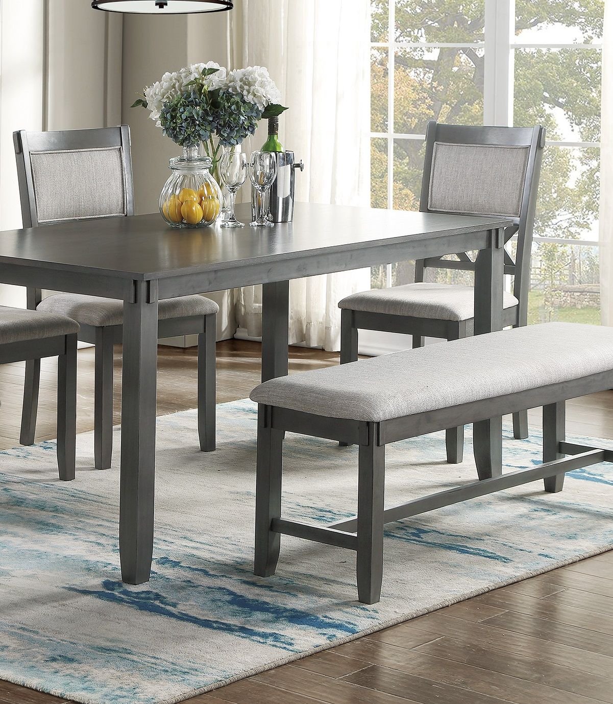 Gray Color Dining Room Furniture Unique Modern 6pc Set Dining Table 4x Side Chairs and A Bench Solid wood Rubberwood and veneers