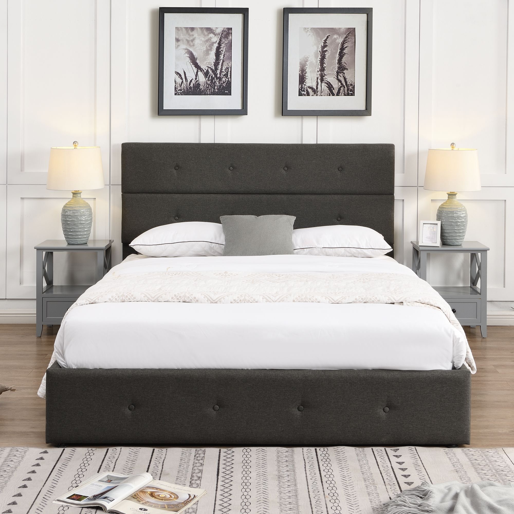 Simple and elegant, the upholstered bed with storage will make a lasting impression in your room. With a modern look and a touch of simple style, this bed combines fashion and function. On the one hand, it is upholstered in linen featuring button-tufted details in both the headboard and footboard. On the other hand, it comes with underbed storage that provide extra storage space for your bed sheets, season clothing and accessories. It is designed with a bentwood slat support system that provides incredible ventilation to keep your mattress fresh for longer and does not require a box spring or additional foundation.