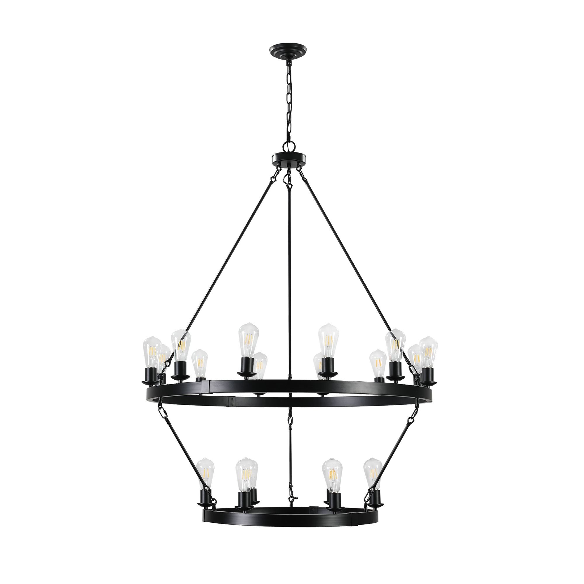 Contemporary homes in mind, This chandelier is a stylish update to the silhouette of traditional chandeliers. Exposed bulbs offer widespread light and warmth to contrast the collection's smooth, modern finish. Explore the many configurations of this versatile series and find the perfect look that fits your space. CHANDELIER DIMENSIONS: 53.1" High x 40.2" Wide, Weight:19.71 lbs.MEDIUM BASE LIGHT SOCKET:60 Watt Incandescent Bulb(s), Does Not Include Bulb(s), 18 E26 light bulbs required Socket Compatible With Incandescent, CFL, Halogen Or LED Bulb(s).(This product does not contain a light source)