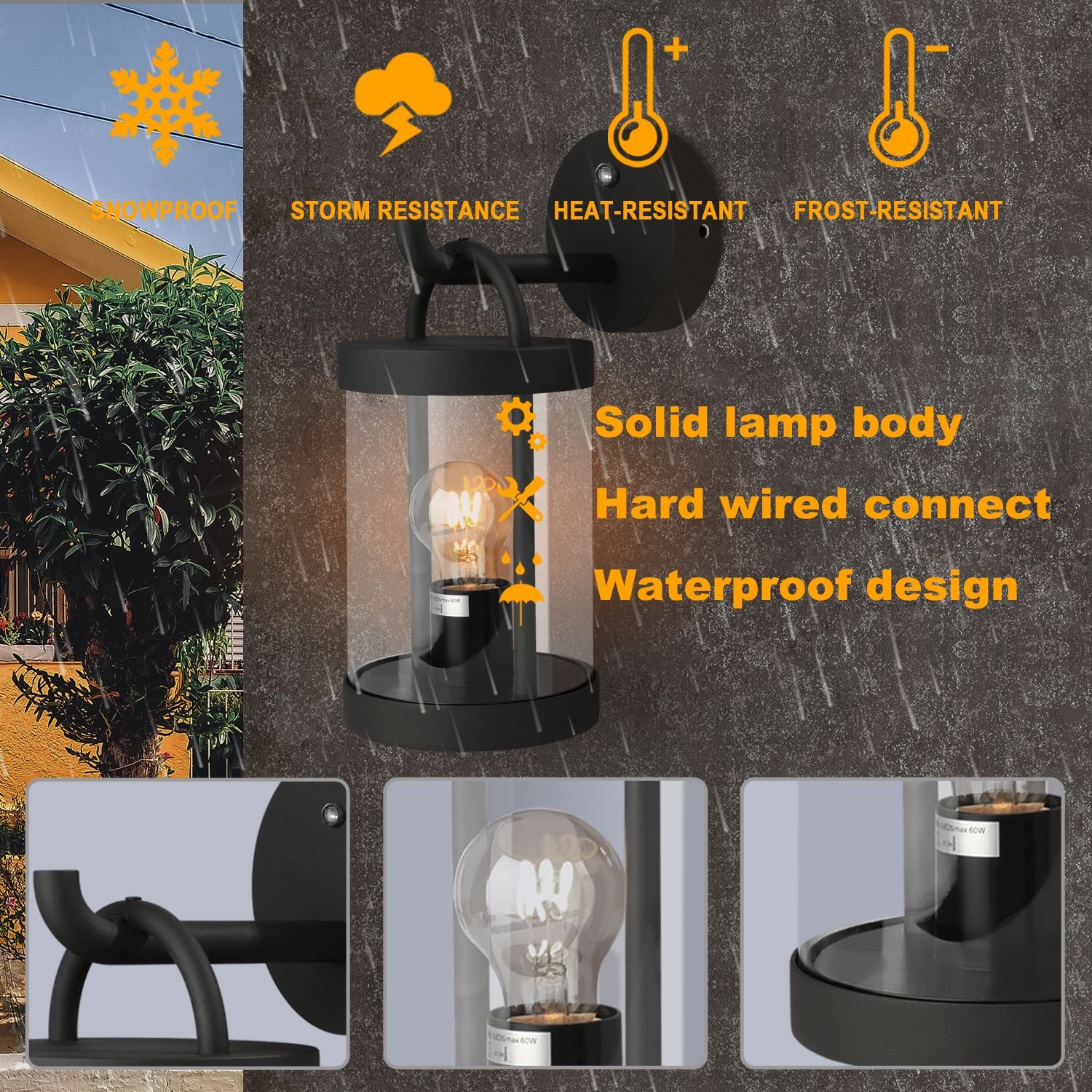 Made from high-quality aluminum and a sturdy glass housing; these outdoor wall lights with dusk to dawn sensors feature a stylish and convenient compound that complements any decor and are ideal for front and rear entryways or decorating your home.