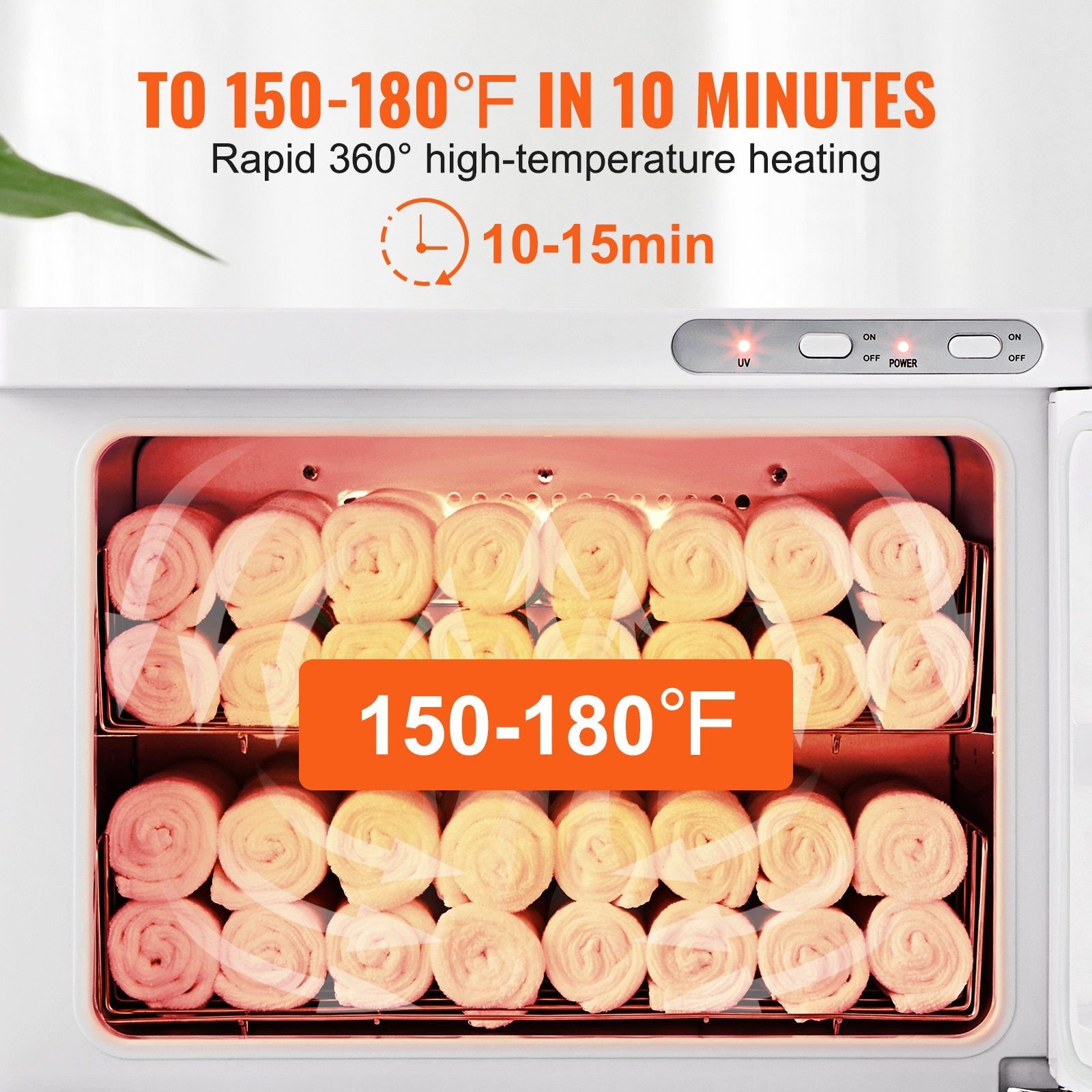 3.UV Light for Added Safety: Equipped with powerful 6W UV light, this hot towel cabinet efficiently cleans towels deeply, leaving them softer and more comfortable to use. The towels are cleaner, ensuring safety and peace of mind.