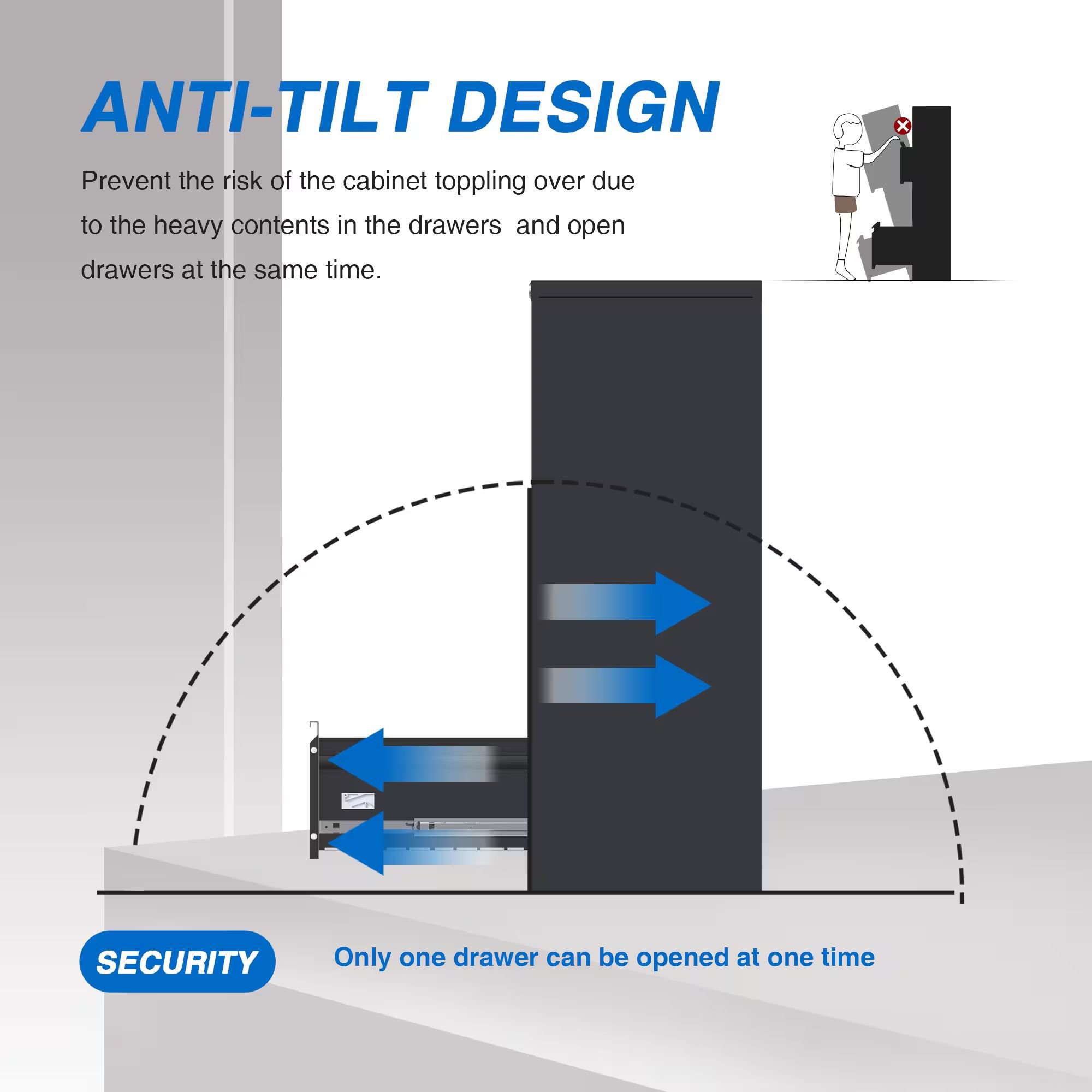 • [Anti-tilt Mechanism Design]Designed with full extension and steel ball-bearing suspension, all drawers can be open and close quietly and easily. When one drawer is open, the interlocking drawer system prevents the other drawer from opening, which prevents tipping.