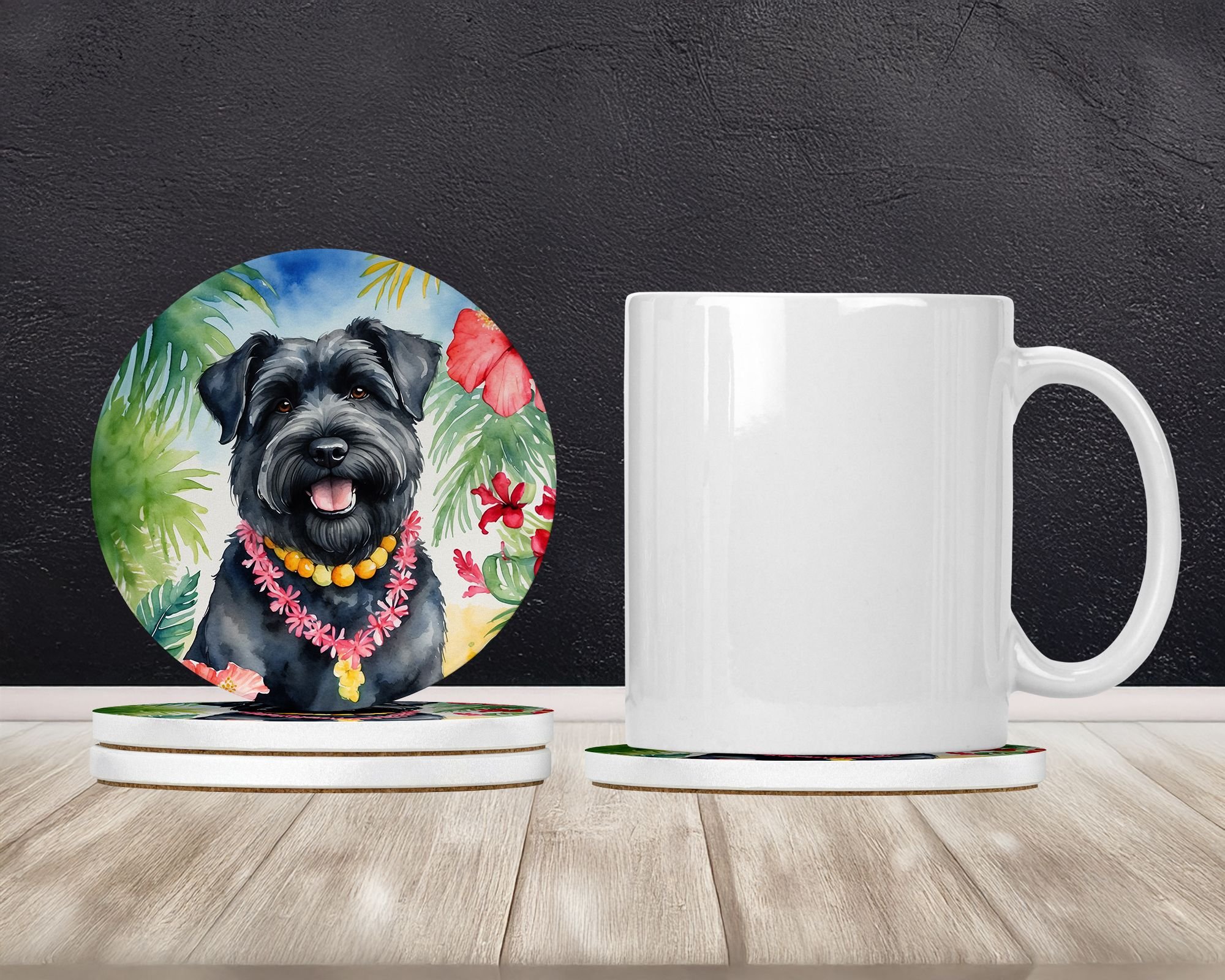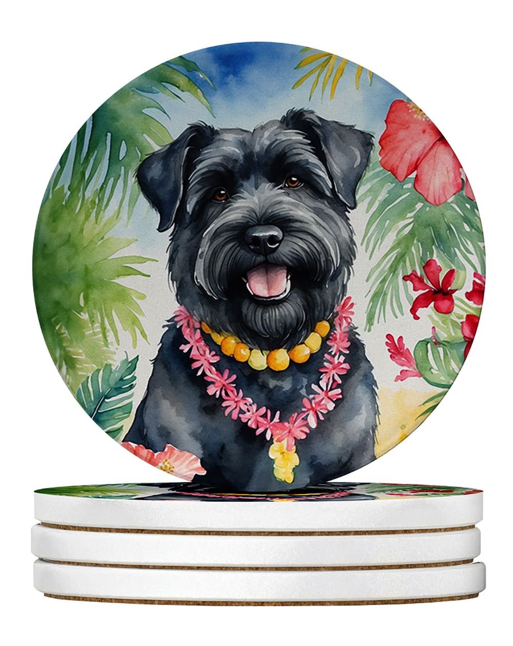 Bouvier des Flandres Luau Large Sandstone Coasters Pack of 4 Absorbent Round Coasters Decor Gifts for Men or Women, 4 in, Multicolor
