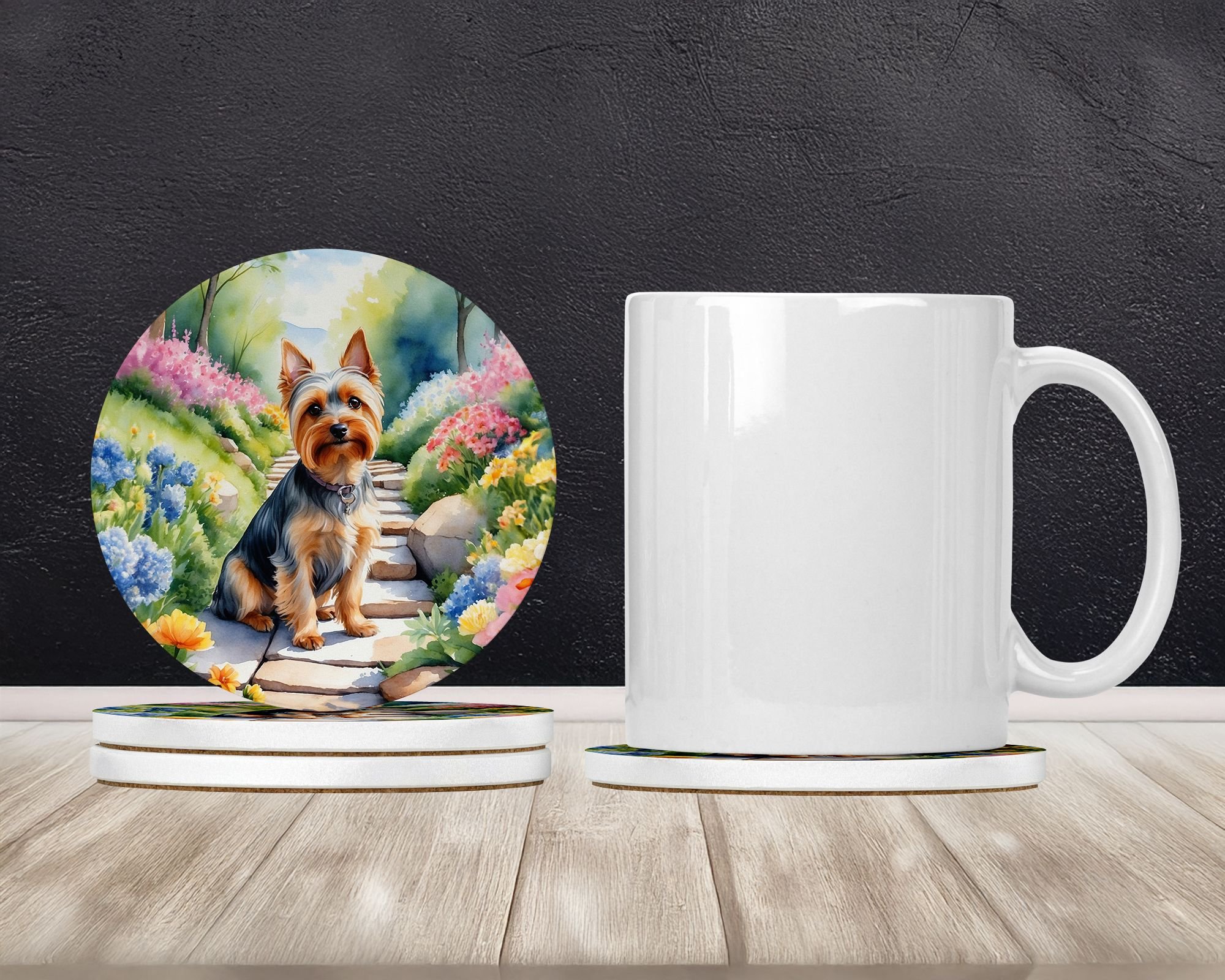 Silky Terrier Spring Path Large Sandstone Coasters Pack of 4 Absorbent Round Coasters Decor Gifts for Men or Women, 4 in, Multicolor