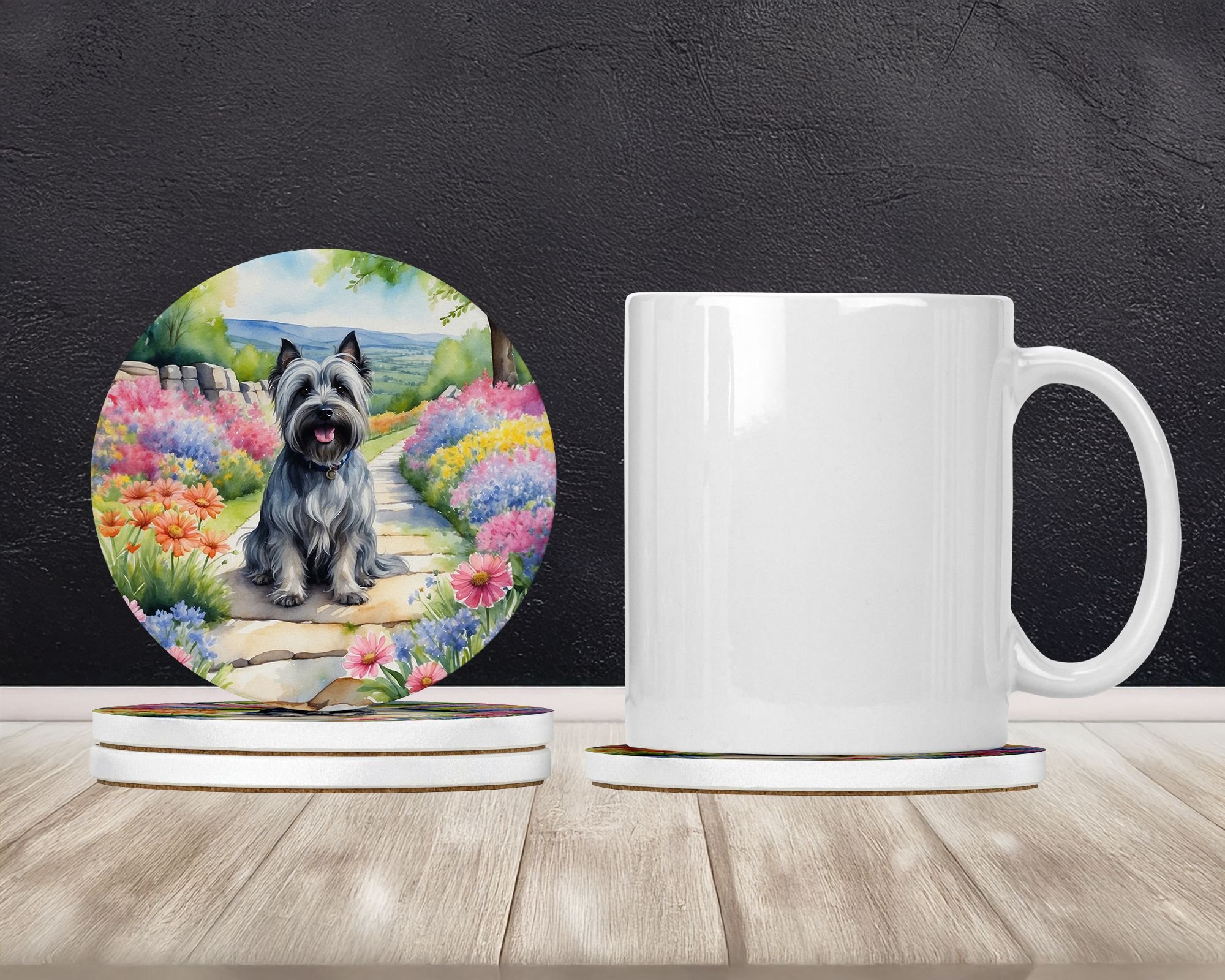 Home > Skye Terrier Spring Path Large Sandstone Coasters Pack of 4 Absorbent Round Coasters Decor Gifts for Men or Women, 4 in, Multicolor