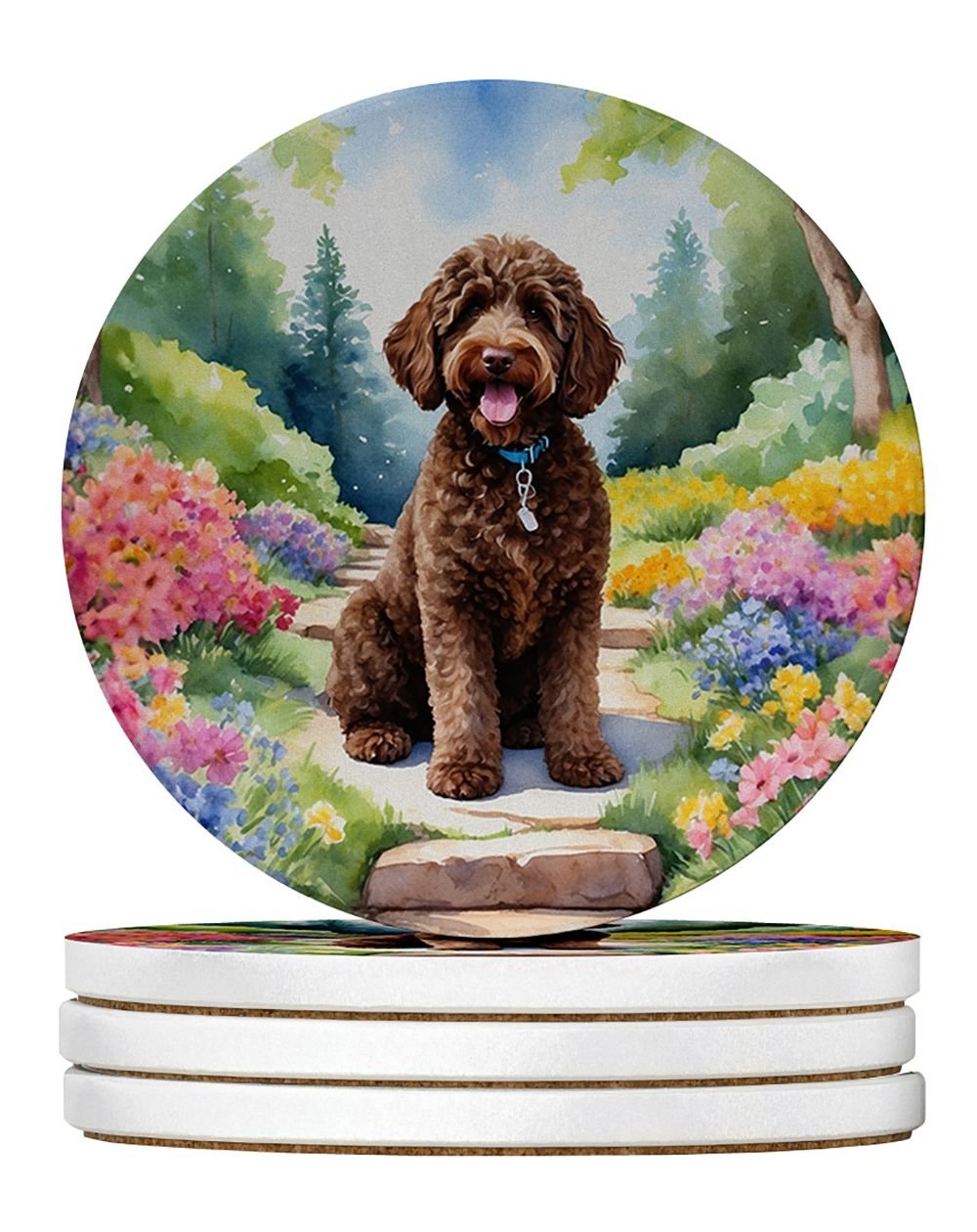 Home > Labradoodle Spring Path Large Sandstone Coasters Pack of 4 Absorbent Round Coasters Decor Gifts for Men or Women, 4 in, Multicolor
