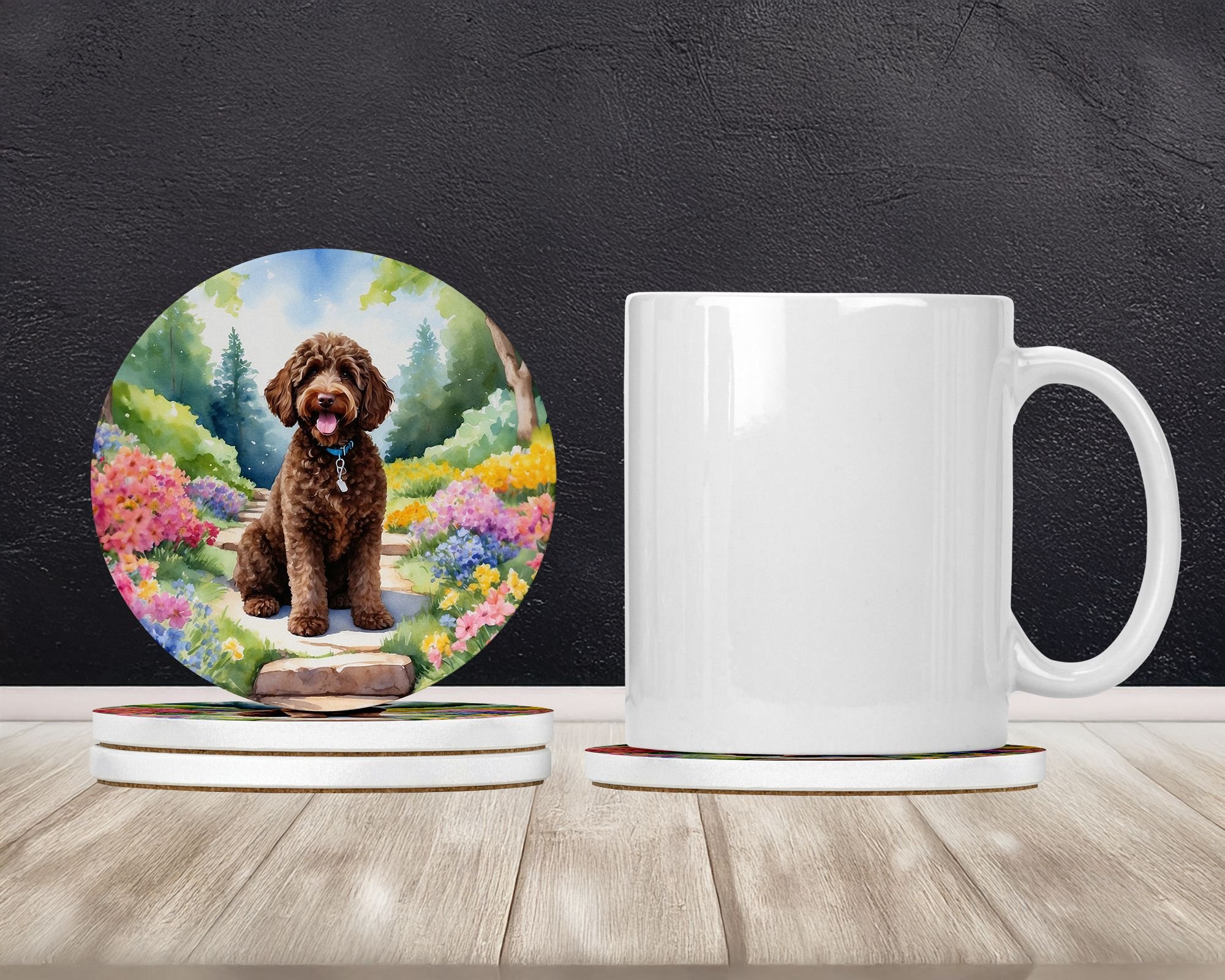 Labradoodle Spring Path Large Sandstone Coasters Pack of 4 Absorbent Round Coasters Decor Gifts for Men or Women, 4 in, Multicolor