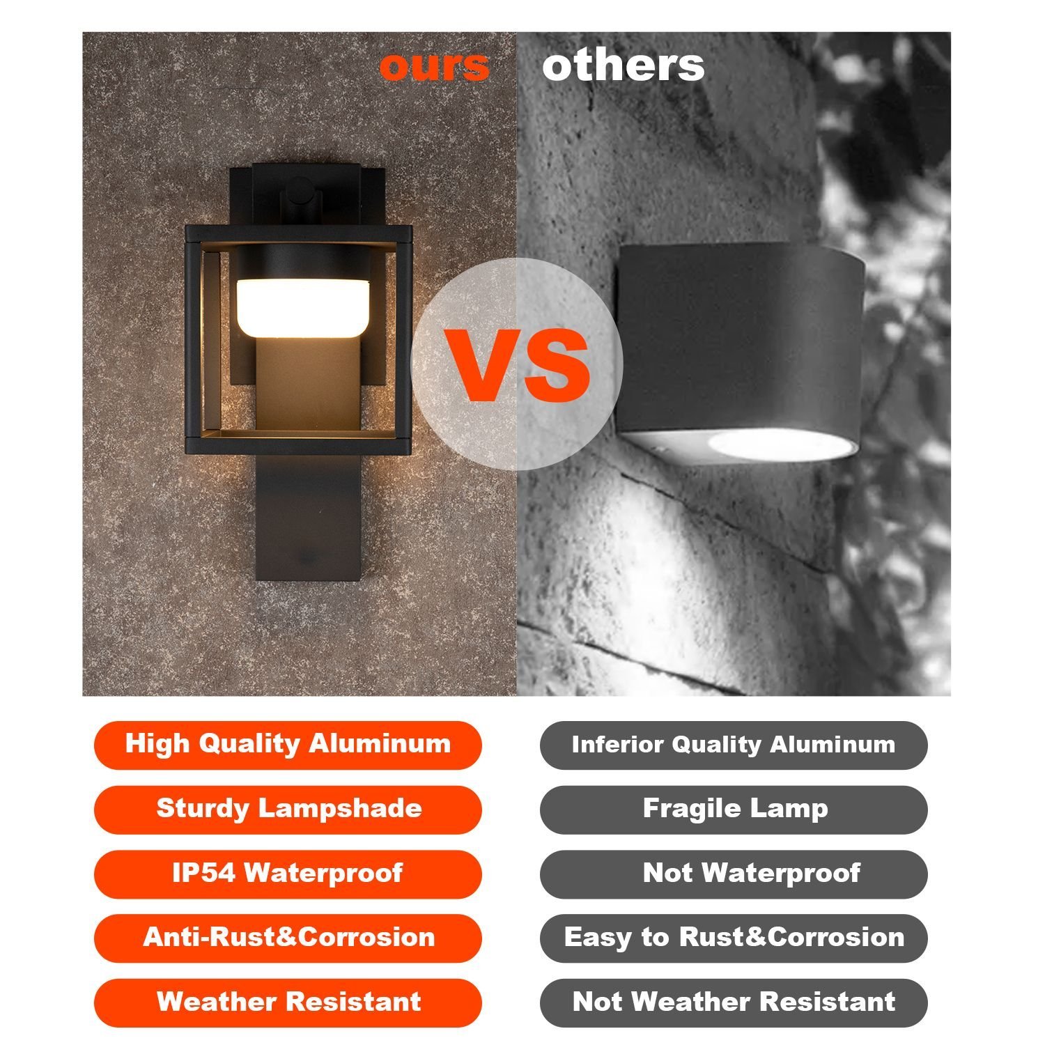 3.Weather Resistant & Durable: Our outdoor wall sconce is IP44 grade waterproof and durable enough to withstand any weather changes, The outdoor wall lantern is constructed with high quality aluminum which effectively prevent from rustiness or corrosion, ideal for any outdoor environment . Even it is rain, snow, ultra-high or low temperatures, this outdoor wall lamp will always remain bright and new. Ideal for entryway, doorway, foyer, corridor, balcony, patio and porch.
