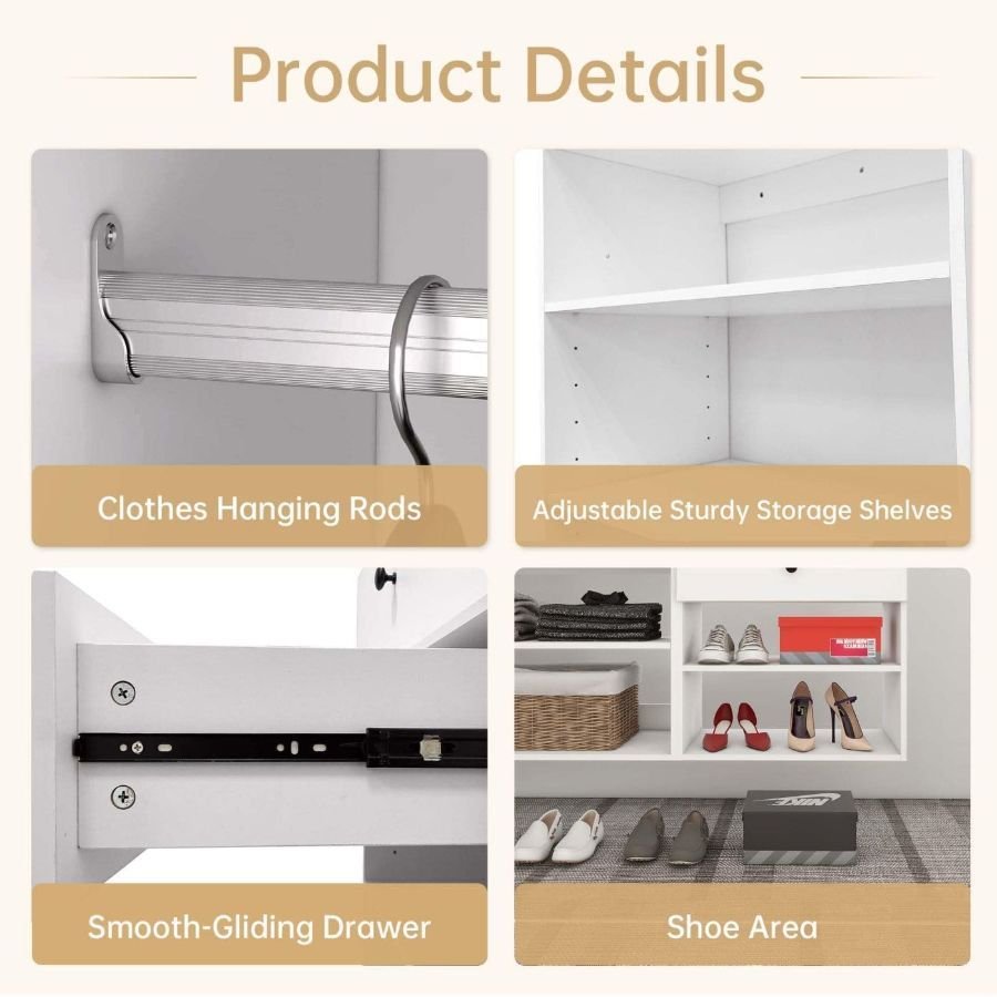 Livelylodge Modular Wardrobe Closet - Freestanding White Closet with Spacious Storage Shelves and Hanging Rods 70.86"W x 16.04"D x 70.86"H