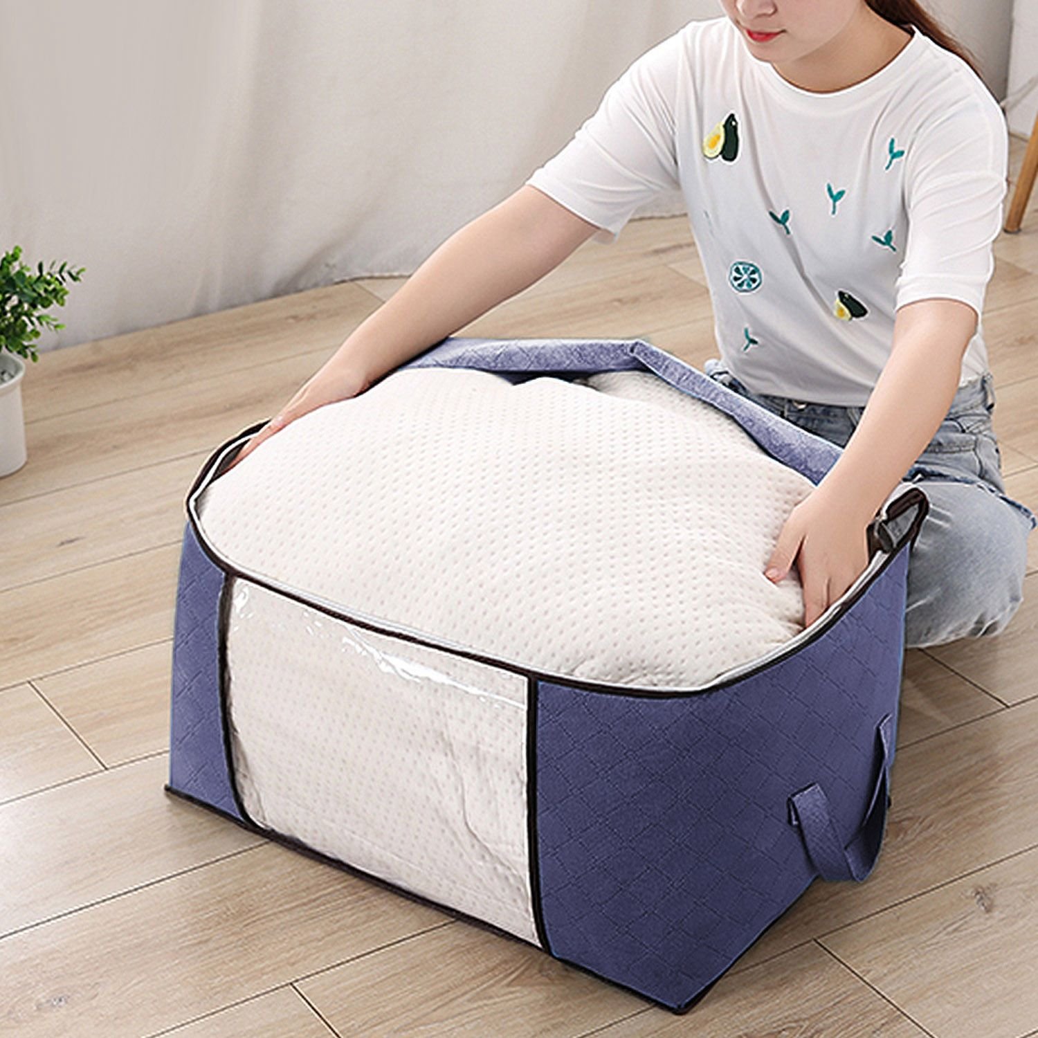 **Keep Your Home Neat with Large Capacity*:The storage bag comes in a set of 2(Blue and Grey),and thew size of each bag is 60 x 40 x 35cm / 23.6x 15.7 x13.8 in,about 90L. It is spacious enough for your comforters,blankets,pillows,jackets,linens,holiday decorations,toys,photos,baby clothes or other clothes.