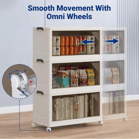 Home > Collapsible Storage Bin Organizer, Stackable Cube Large Plastic Storage Box With Lid And Wheels