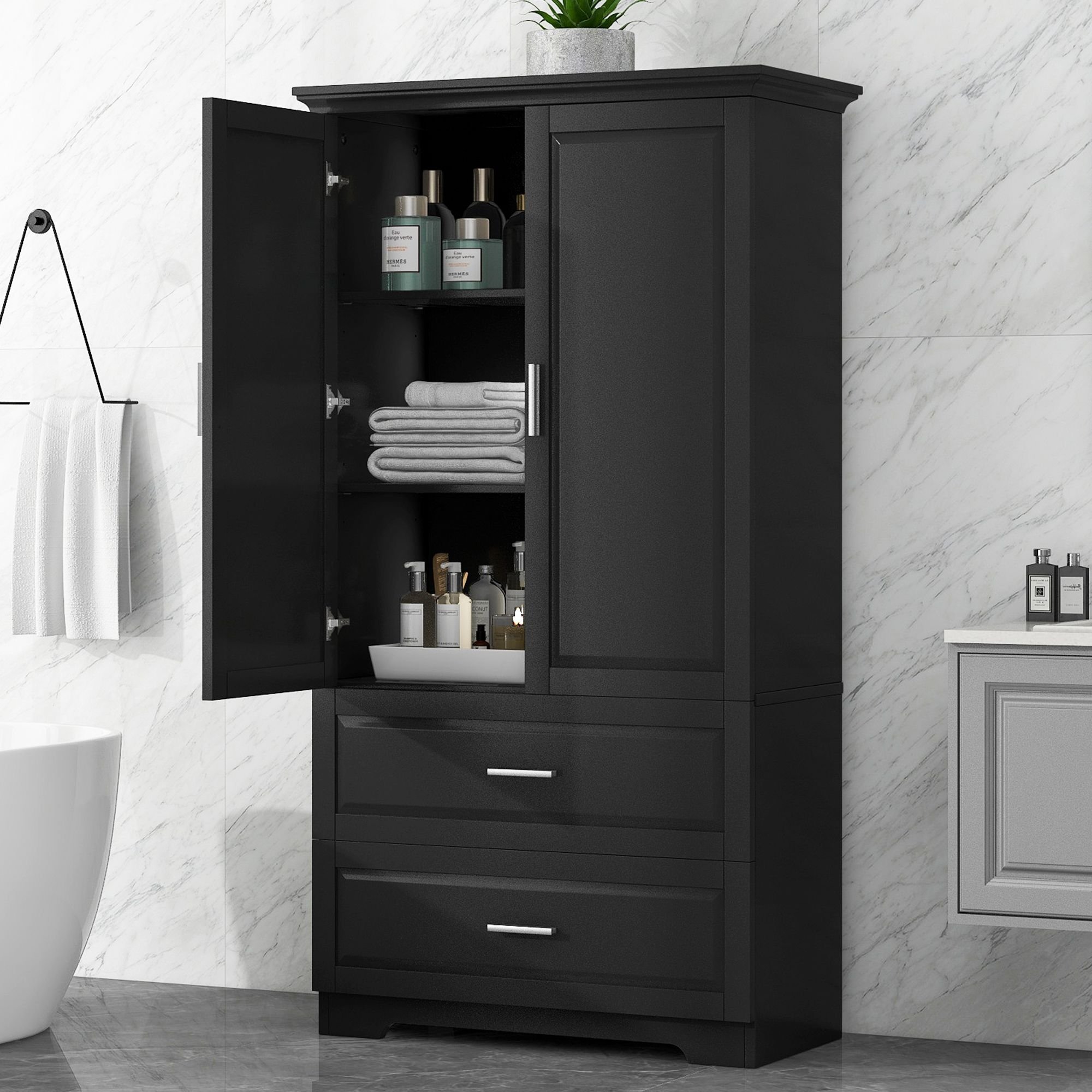 Home > Tall Bathroom Storage Cabinet, Cabinet with Two Doors and Drawers, Adjustable Shelf, MDF Board