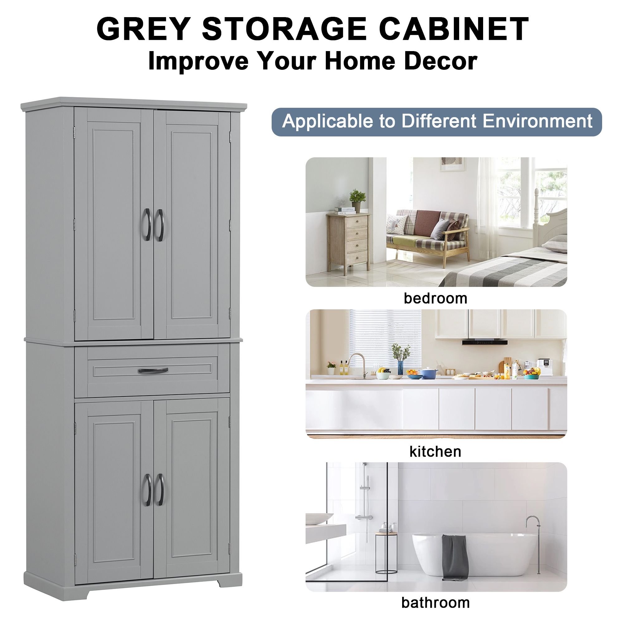 4.Wide Application: This tall storage cabinet is widely applicable. You can put it in the office as a bookcase, bathroom as a storage cabinet, etc.